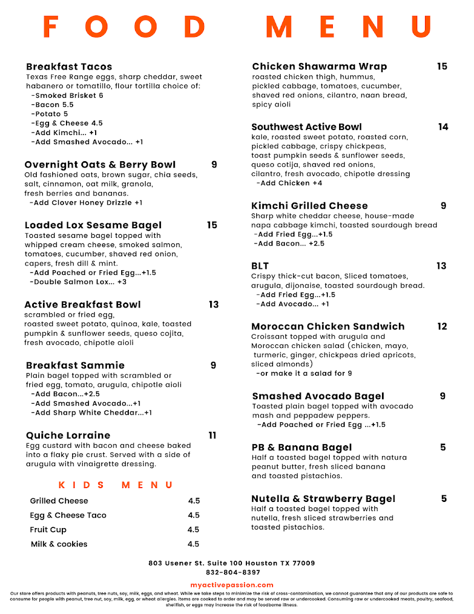 Located at 803 Usener St in Houston, Active Passion Coffee & Cafe is a vibrant hub for food lovers and coffee aficionados alike. The café impresses with a diverse menu that caters to all tastes. Guests rave about the brisket egg taco, crafted with a perfectly cooked tortilla and indulgent, flavorful ingredients. The Loaded Loc Sesame Bagel paired with a fried egg stands out as a breakfast masterpiece, complimented by a delightful rose vanilla latte.